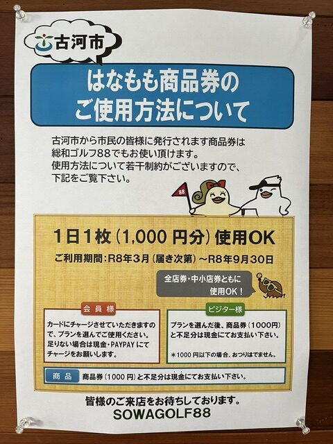 総和ゴルフ88でも、この商品券の利用が可能になります。
