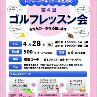 恒例の「レディースゴルフレッスン会」を4月も実施いたします。